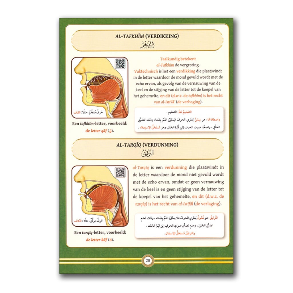 In dit beknopte werkboek heeft de auteur de eigenschappen van de Arabische letters op een simpele manier gecompileerd middels verduidelijkende illustraties en diagrammen van de spraakorganen, en wat daarmee in relatie staat. Ook bevat het kleuren om sommige tajwid-thema’s nader te belichten en om onderscheid er tussen te kunnen maken.
